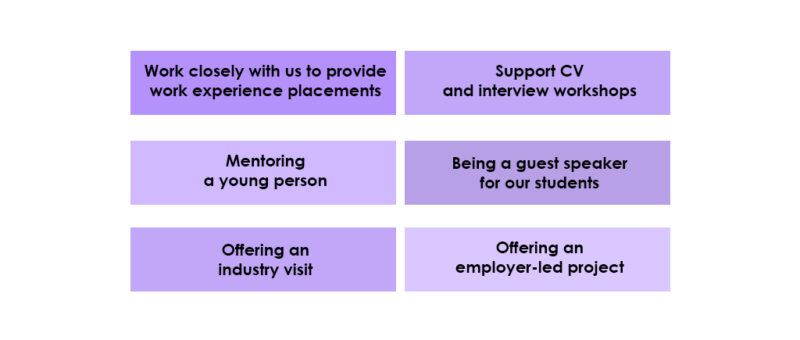 These opportunities can be pre-planned, are flexible, and align with both our curriculum and our employers’ needs. This ensures that what our students are learning in the workplace can be reflected in, and related to, their programme of study.