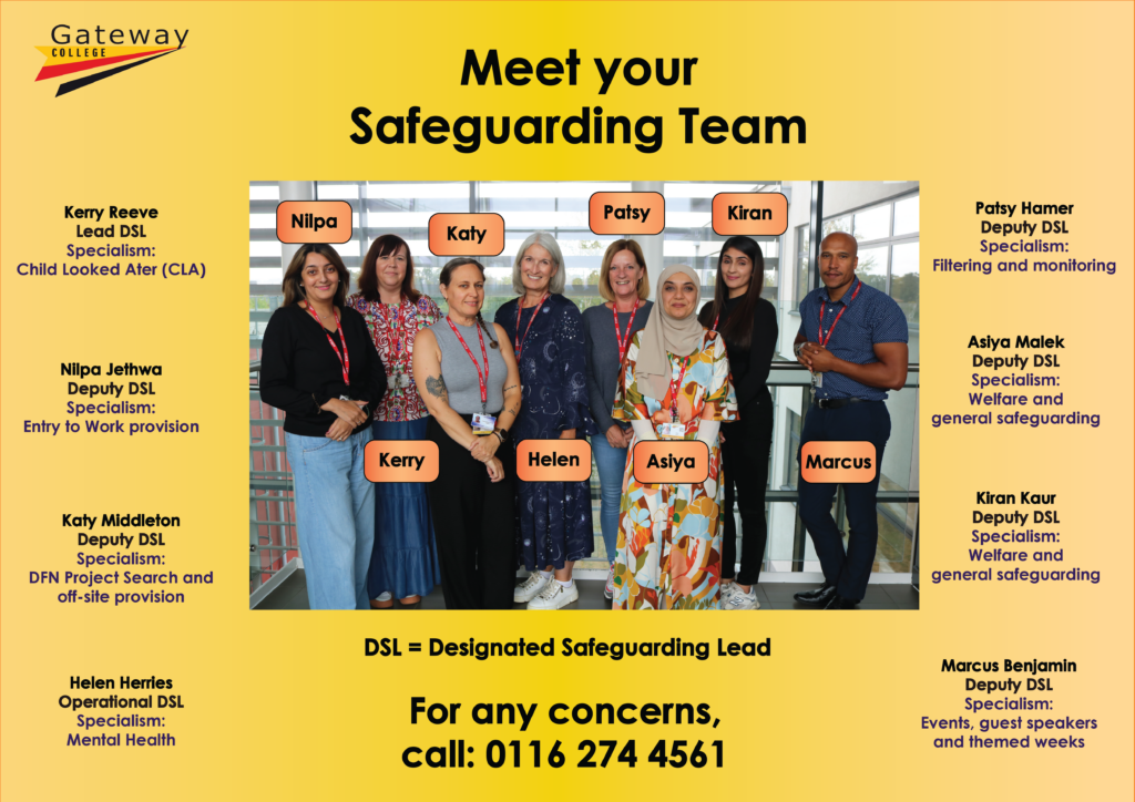Gateway College has a statutory and moral duty to ensure that the College functions with a view to safeguarding and promoting the welfare of the young people and vulnerable adults studying at the College.